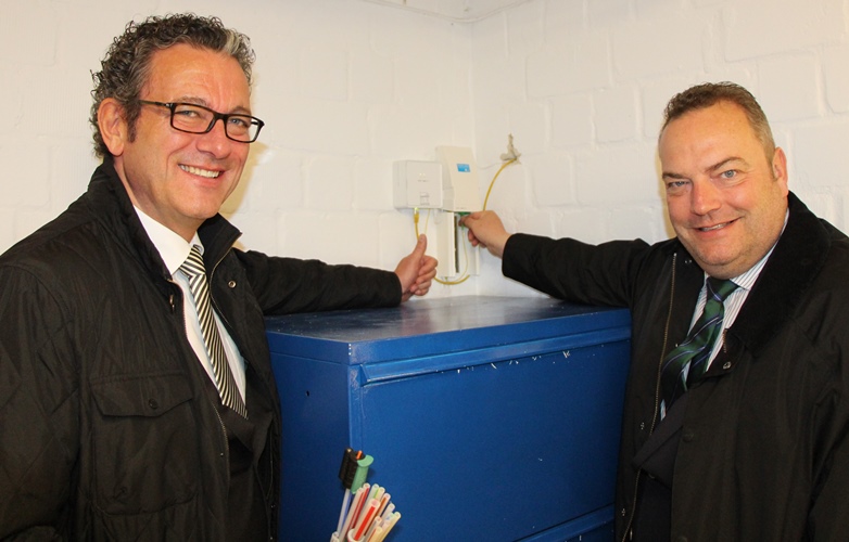 Im Ortsteil Sythen sind die ersten Glasfaser-Anschlüsse „scharf“ geschaltet. Davon konnten sich am Dienstagmorgen Bürgermeister Bodo Klimpel und weitere Besucher in der Grundschule überzeugen. Schulleiter Hans Hatebur zeigte den Vertretern der Deutschen Glasfaser und der Stadtverwaltung zunächst im Keller den unscheinbaren kleinen Anschluss an der Wand, bevor es im Zimmer des Rektors richtig schnell wurde: „Hier kommen wirklich 100 Mbit an, das gilt für den Down- als auch für den Upload“, erklärte Jürgen Bially,