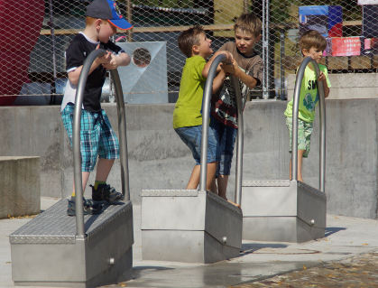 Nun ist das Projekt Stadtmühlenbucht, Tor zum 2Stromland, fertig und wurde vom Bürgermeister der Stadt Haltern am See, Bodo Klimpel, der öffentlichkeit vorgestellt und zum erleben freigeggeben. Das Erleben mit dem Wasser, welches ja reichlich durch die Halterner Seen vorhanden ist, wurde hier insbesondere für die Kinder spielerisch näher gebracht. Auch wenn die Pumpen ein wenig schwer zu bedienen sind, bevor sie das geförderte Wasser aus den Düsen spritzen, merken die Kinder doch auch schon hier das es sich im Team besser bewerkstelligen läßt. Auch schon heute, am Tag der Eröffnung waren viele Mütter mit ihren Kindern gekommen um gemeinsam ein wenig Zeit am See zu verbringen. 3,5 Millionen Euro wurden bisher nicht in den Sand gesetzt sondern durch die ökologische Gestaltung für den Bürger gewinnbringend umgesetzt. Die Stadmühlenbuch hat sich zu ihrem Vorteil verändert. Sonniges Wetter, warme Temperaturen und überall strahlende Gesichter: Eine überaus angenehme Atmosphäre herrschte am Freitagmorgen an der Stadtmühlenbucht, wo Bürgermeister Bodo Klimpel gemeinsam mit Uta Schneider von der Regionale 2016 und Ralf Weidmann von der Bezirksregierung das Eröffnungsband durchschnitten. Zuvor hatten die drei Redner bereits die Vorteile dieses Projektes hervorgehoben, dass seit dem Spatenstich im Januar 2016 entstanden ist. Die Mädchen und Jungen aus den zwei Kindergartengruppen (Marien- und Josephskindergarten) hatten sichtlich Spaß, im Sand und an den Pumpen und Wippen zu spielen. Ein mobiles Musiktrio, Getränke- und Imbissstände sowie eine Hüpfburg sorgten für weitere Unterhaltungsmöglichkeiten, die von den zahlreichen Gästen, unter ihnen auch einige Halterner Bürgerinnen und Bürger, gerne genutzt wurden. In Anwesenheit der heimischen Bundestagsabgeordneten Rita Stockhofe und des Landtagsabgeordneten Josef Hovenjürgen bedankte sich Bodo Klimpel in seiner Rede bei allen Beteiligten, die hier weit über die Stadtgrenzen hinaus so gut und konstruktiv zusammengearbeitet haben. Der Bürgermeister erwähnte u.a.: „Zudem haben wir schon vorher den Parkplatz aus Gründen des Trinkwasserschutzes verlegt und nun auch noch die Straße Strandallee so attraktiv und neu gestaltet. Mit einem Satz: Mit Hilfe der Regionale 2016 konnten wir mit dem Projekt 2Stromland und in guter Zusammenarbeit mit den Nachbarstädten Olfen und Datteln auch an unserer Infrastruktur eine Menge bewegen. Hier hat die Regionale 2016 bestens unter Beweis gestellt, wie fruchtbar und zielorientiert diese gemeinsame Arbeit über die Stadtgrenzen hinaus gewesen ist. Ohne diesen Zusammenschluss wäre dies von uns in Haltern am See nicht zu schaffen gewesen.“ Bodo Klimpel verhehlte aber auch nicht, dass der Stadtmühlenbucht-Ausbau sowohl in der Bevölkerung als auch in der Politik auch Gegner gehabt hat. „Das ist natürlich ihr gutes Recht in unserer zum Glück gut funktionierenden Demokratie. Dazu gehört es allerdings nach meinem Verständnis auch, demokratische Entscheidungen zu akzeptieren. Bei manchen Gegnern habe ich derzeit allerdings noch Zweifel, ob sie das schon können. Vielleicht lassen sie sich auch schon dadurch überzeugen, dass wir allein schon aufgrund der großzügigen Bezuschussung für die Parkplatzverlegung und den Ausbau der Strandallee von einem für uns sehr lohnenswerten Projekt reden können.“ Am Freitag waren sich jedenfalls alle Anwesenden einig, dass dieses regionale 2016-Projekt ein großer Gewinn für die Region ist. Das stellten ebenso deutlich Uta Schneider und Ralf Weidmann heraus. Der Vertreter der Bezirksregierung: „Damit hat Haltern am See einen weiteren sehr attraktiven Punkt geschaffen.