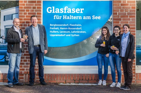Nun beginnt für die Deutsche Glasfaser die Planungsphase, der Ausbau des Glasfasernetzes „Bei der Netzplanung werden wir versuchen auch die Außenbereiche bei einem Ausbau mit zu realisieren.', erläutert Rene Fuchs, Projektleiter Vertrieb. Wie geht es nun weiter? Nach der offiziellen Freigabe der Geschäftsführung beginnen die detaillierten Vorbereitungen für den Ausbau in den Vororten von Haltern. Jeder, der einen Vertrag eingereicht hat, wird über die weiteren Schritte informiert und zur Besprechung des Hausanschlusses kontaktiert. Als kleines Dankeschön für das große Engagement möchte Deutsche Glasfaser diejenigen, die noch keinen Vertrag abgeschlossen haben, eine zusätzliche Chance einräumen. An den Serviceständen in Hullern und Sythen, sowie am Servicepunkt in Haltern am See können von Donnerstag, 15.Dez. und Freitag 16.Dez. von 14:00-19:00 Uhr, sowie am Samstag, den 17. Dez. von 10:00 bis 15:00 Uhr noch Verträge zu den Aktionsangeboten geschlossen werden. Ebenfalls können online sowie bei den Vertriebspartnern Mobilfunk Entrop (Hamton) oder Elektro Janlewing Verträge an den genannten Tagen eingereicht werden. Alle Informationen über Deutsche Glasfaser und die buchbaren Produkte sind online unter www.deutsche-glasfaser.de verfügbar. Hier sind in Zukunft auch Details über den Stand der Nachfragebündelung sowie aktuelle Nachrichten zu Ihrem Ort einzusehen. Die Ausbauarbeiten werden in den Ortsteilen voraussichtlich im Frühjahr beginnen.